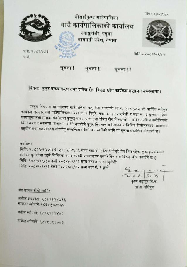कुकुर बन्ध्याकरण सम्बन्धी सूचना