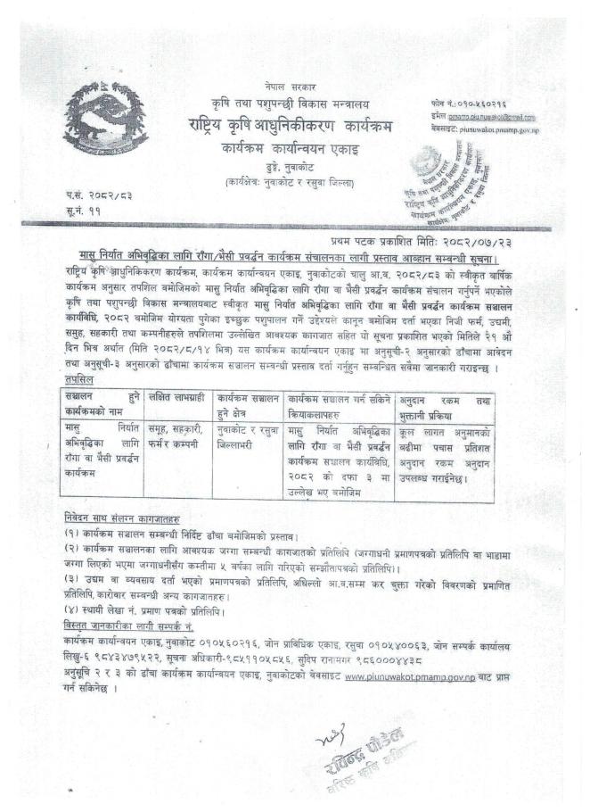 मासु निर्यात अभिव्रिद्दीका लागि राँगा/भैंसी प्रवार्द्दन कार्यक्रम संचालनका लागि प्रस्ताव आह्वान सम्बन्धी सूचना