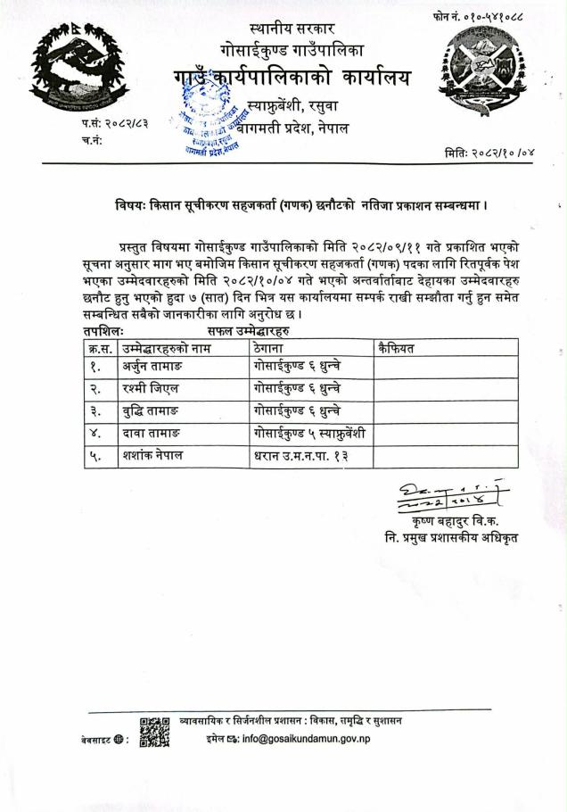 किसान सूचीकरण सहजकर्ता (गणक) नतिजा प्रकाशन सम्बन्धमा