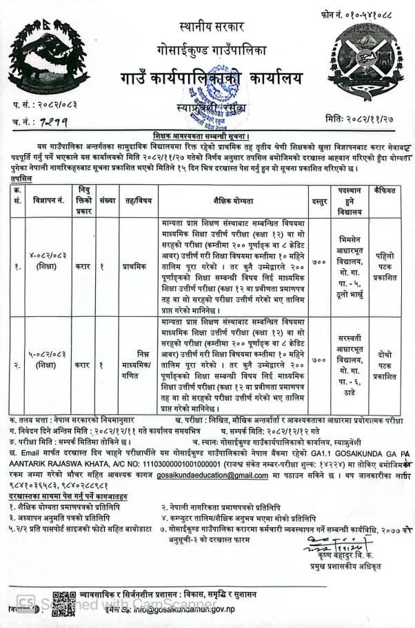 शिक्षक आवश्यकता सम्बन्धी सुचना।