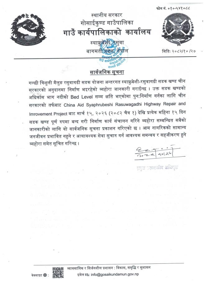 सम्बन्धित सबैको लागि सार्वजनिक सूचना